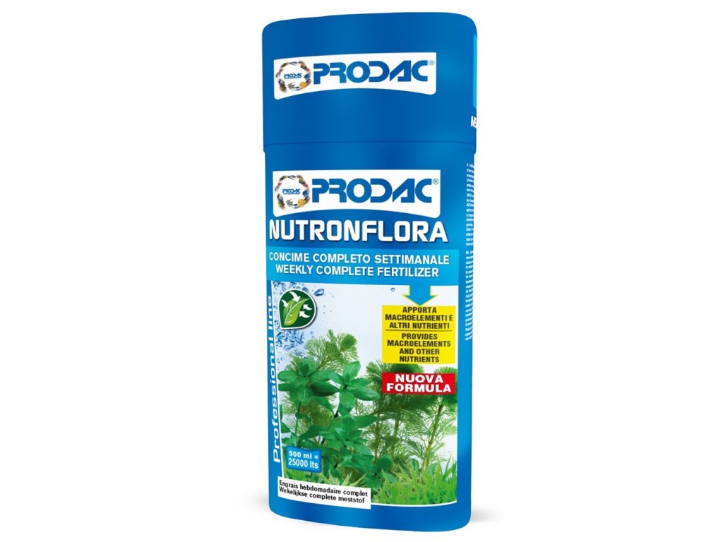 Nová vylepšená formule akvarijního hnojícího přípravku Nutronflora, pro podporu zdravého růstu vodních rostlin. Roztok s vyšší koncentrací a nižším dávkováním dodává rostlinám přímo a cíleně dusík, fosfor a draslík (navýšené množství mg/l) Nové dávkování: 1 ml na každých 50l vody (dávkujte 1x týdně) - pro větší rozvoj růstu rostlin střídejte s PRODAC NUTRONFERRO Balení: 500 ml