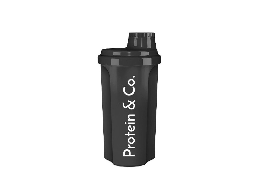 Plastový Shaker se zásobníkem na protein. S mřížkou uvnitř. Objem 500 ml. Barva: černá Vhodné pro rozmíchání instantních nápojů.