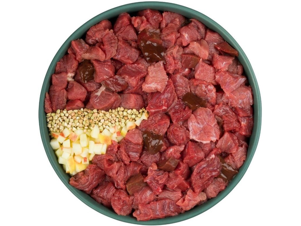 Zdravý a chutný masový salám, který obsahuje 90 % čerstvého jehněčího masa, mrkev, hrášek a lněné semínko.