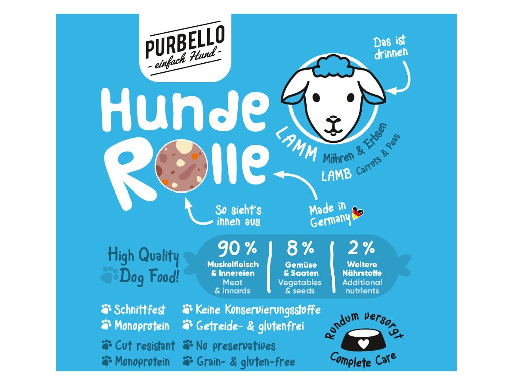Vhodné i pro psy s citlivým zažíváním. Jedná se o kompletní krmivo.PURBELLO je monoproteinové mokré krmivo pro psy vytvořené pro zdravou výživu psů.Díky svému složení s jediným zdrojem živočišných bílkovin, vysokým podílem masa a té správné receptuře je PURBELLO zdravé a vysoce chutné.Krmivo je také velmi dobře stravitelné a vhodné i pro psy s citlivým zažíváním.PURBELLO:- monoproteinová receptura- snadné dávkování- vysoký podíl masa – žádná moučka- pouze čerstvé maso, zelenina a ovoce- bez obilovin- bez lepku- bez umělých přísad- bez konzervačních látek- vyrobeno v Německu