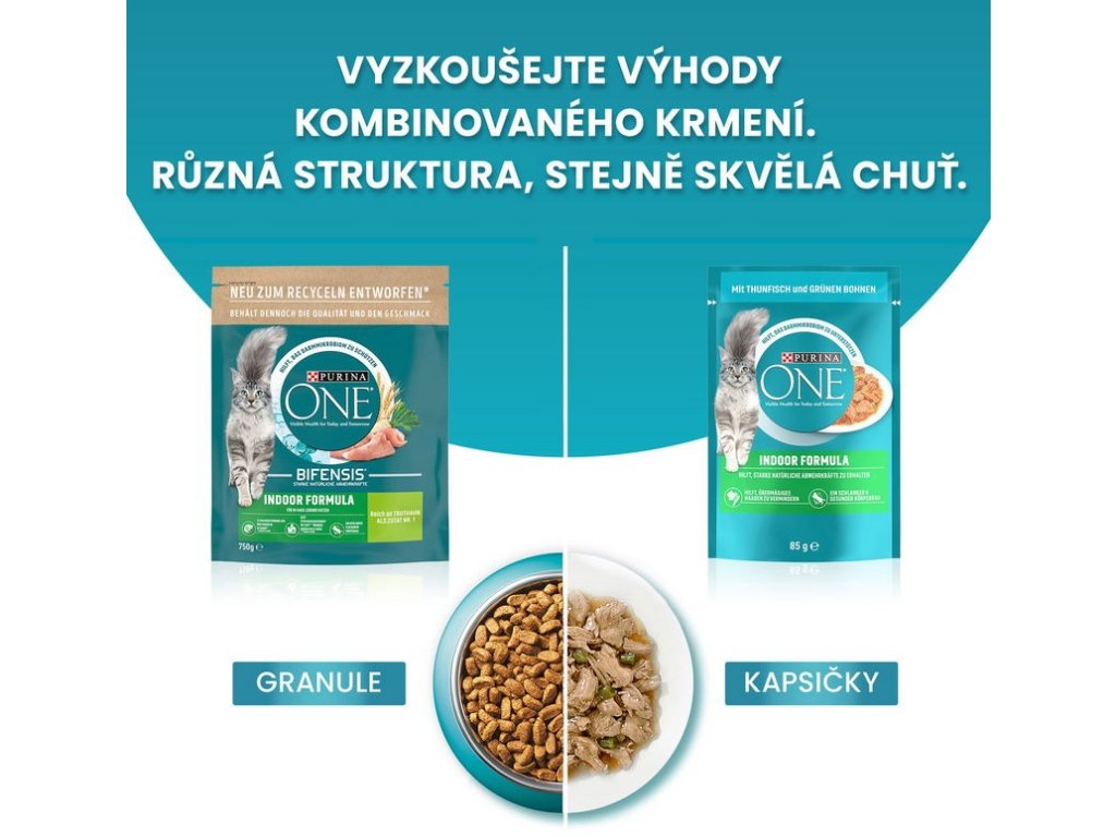 Receptura granulí Purina ONE indoor s krůtou je zaměřena speciálně na kočky žijící v bytech