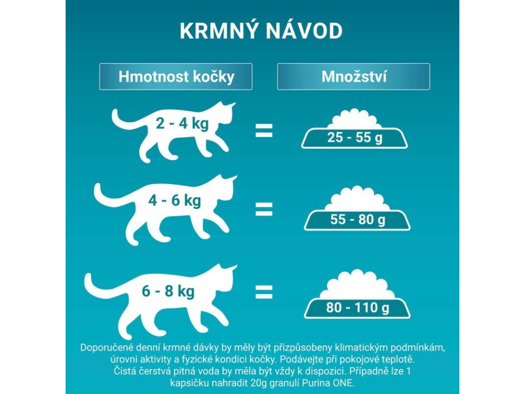 Viz tabulka. Objevte také vysoce kvalitní výživu v kapsičkách Purina ONE - lahodné receptury vyvinuté pro specifické potřeby vaší kočky.