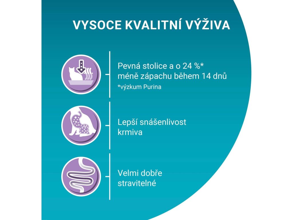 Pevná stolice a o 24 %* méně zápachu během 14 dnů. (*Výzkum Purina)