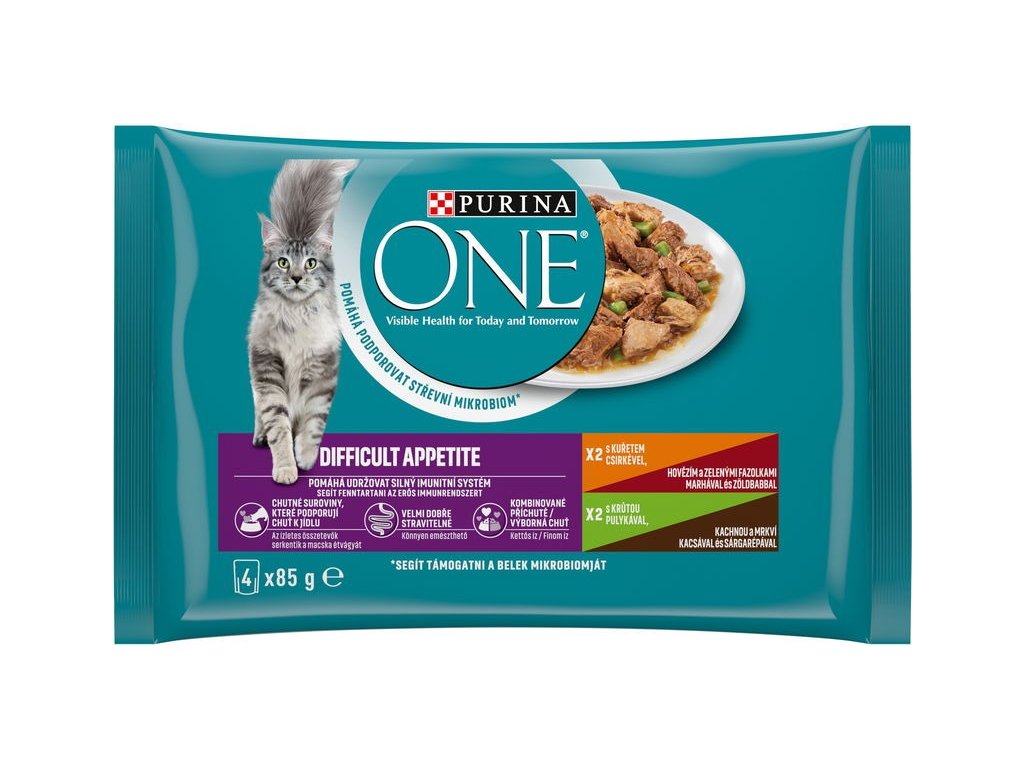 Doporučené denní krmné dávky by měly být přizpůsobeny klimatickým podmínkám, úrovni aktivity a fyzické kondici kočky. Podávejte při pokojové teplotě. Čistá čerstvá pitná voda by měla být vždy k dispozici. Případně lze 1 kapsičku nahradit 20 g granulí Purina ONE Adult.