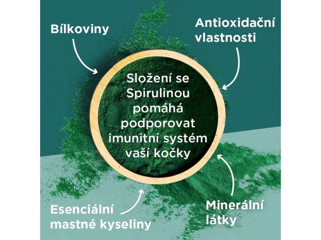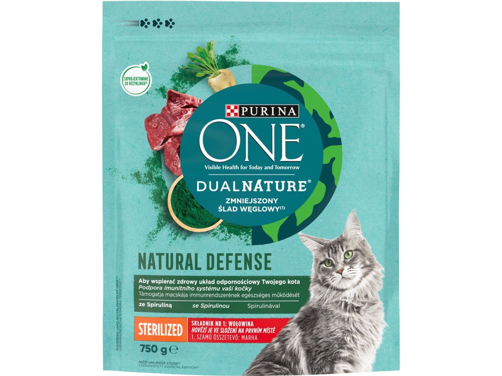 Krmivo pro dospělé kočky s ukončeným vývojem, tedy kočky starší jednoho roku. Purina ONE prokazatelně snižuje tvorbu zubního kamene až o 40 %, jak strukturou granulí, tak svým složením obohaceným o řasu spirulinu (řasu tropických vod s unikátním výživovým profilem).