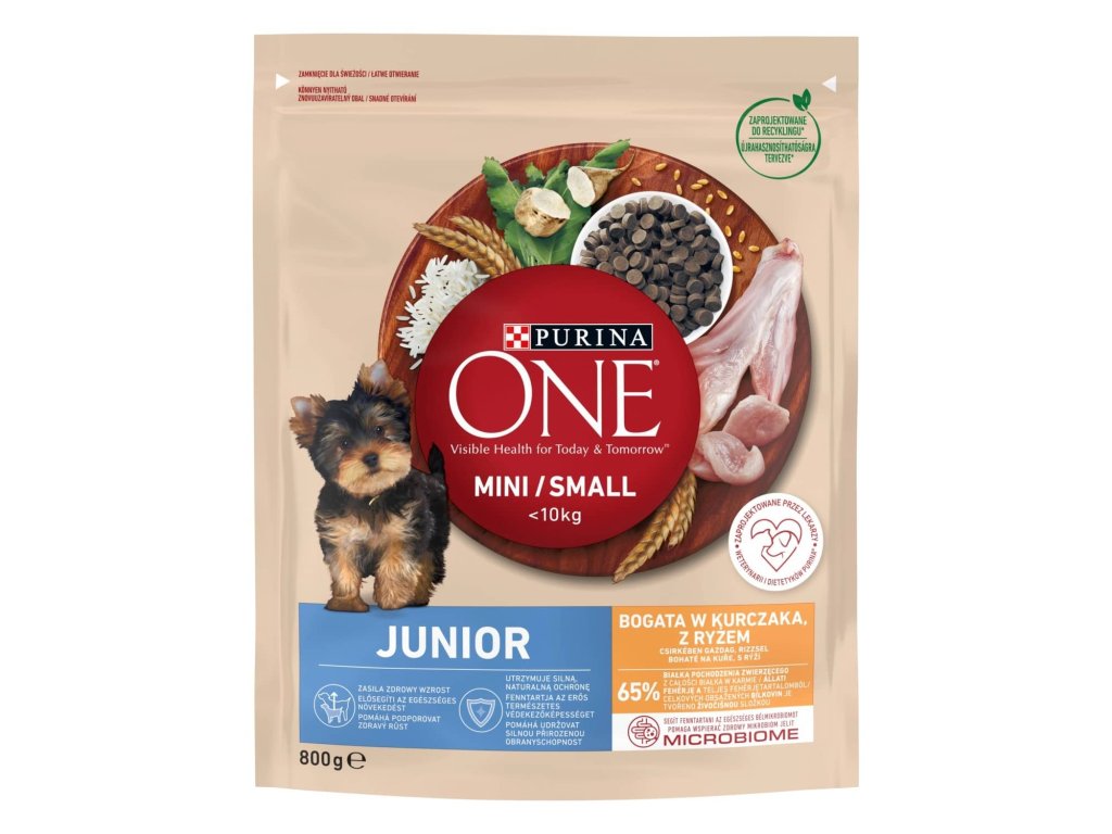 Purina One Mini/Small Dog Junior < 10 kg je chutná receptura bohatá na kuře s vysokým podílem bílkovin, které pomáhají podporovat zdravý růst vašeho štěněte od 1 do 12 měsíců.