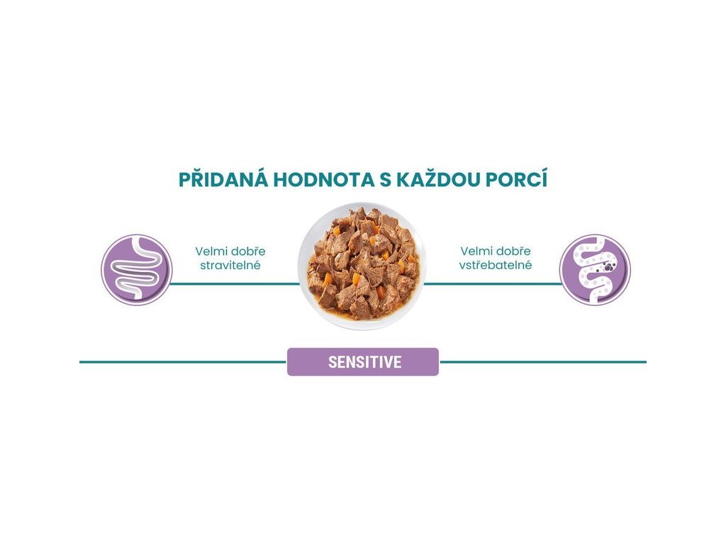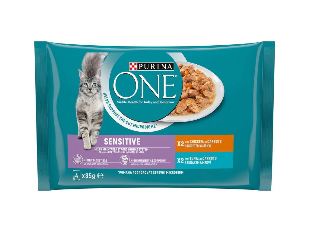 Doporučené denní krmné dávky by měly být přizpůsobeny klimatickým podmínkám, úrovni aktivity a fyzické kondici kočky. Podávejte při pokojové teplotě. Čistá čerstvá pitná voda by měla být vždy k dispozici. Případně lze 1 kapsičku nahradit 20 g granulí Purina ONE Sensitive.