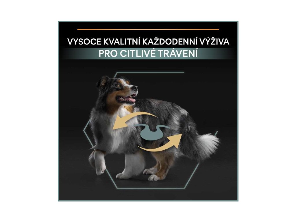 Pečujte o citlivé zažívání svého psa s krmivem PRO PLAN® Sensitive Digestion, aby byl ve skvělé kondici. Hlavní složkou krmiva pro psy Purina PRO PLAN® Sensitive Digestion jsou kvalitní kousky jehněčího a další vysoce stravitelné složky, které usnadňují trávicí proces. Granule obsahují také prebiotika, u nichž bylo vědecky prokázáno, že zvyšují množství bifidobakterií, které zlepšují rovnováhu střevní mikroflóry, a bentonit (přírodní jíl), který podporuje správné vyprazdňování. Vysoký obsah bílkovin pomáhá udržovat silné svaly a ideální kondici.