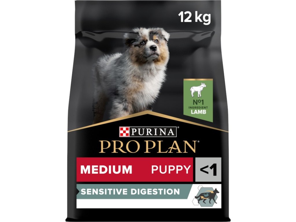 Krmivo Purina PRO PLAN® Sensitive Digestion MEDIUM PUPPY bylo vyvinuto pro štěňata středních plemen (váha v dospělosti 10–25 kg). Tyto granule pro štěňata obsahují vitamín D a minerální látky, které podporují silné a zdravé zuby. Krmivo má velký podíl vysoce kvalitního jehněčího, a tak zajišťuje optimální výživu štěňat středních plemen až do 12 měsíců. Následně byste měli přejít na produkty z řady Adult.