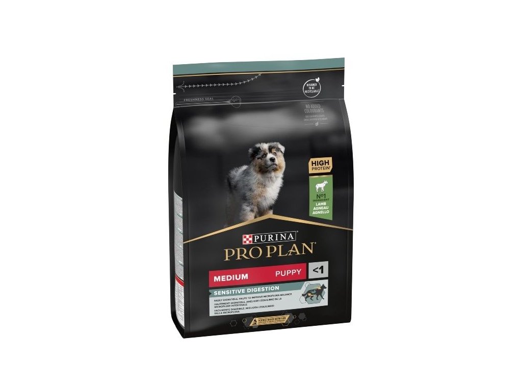 Krmivo Purina PRO PLAN® Sensitive Digestion MEDIUM PUPPY bylo vyvinuto pro štěňata středních plemen (váha v dospělosti 10–25 kg). Tyto granule pro štěňata obsahují vitamín D a minerální látky, které podporují silné a zdravé zuby. Krmivo má velký podíl vysoce kvalitního jehněčího, a tak zajišťuje optimální výživu štěňat středních plemen až do 12 měsíců. Následně byste měli přejít na produkty z řady Adult. Objevte výhody, které mají produkty Sensitive Digestion pro každodenní zdraví a pohodu vašeho psa. Vhodné také pro březí a kojící feny. Pokud chcete svému psovi dopřát rozmanitost, vyzkoušejte různé příchutě krmiva PRO PLAN® s dalšími benefity – například kuřecí v produktech Healthy Start nebo krmivo s lososem z řady Sensitive Skin.