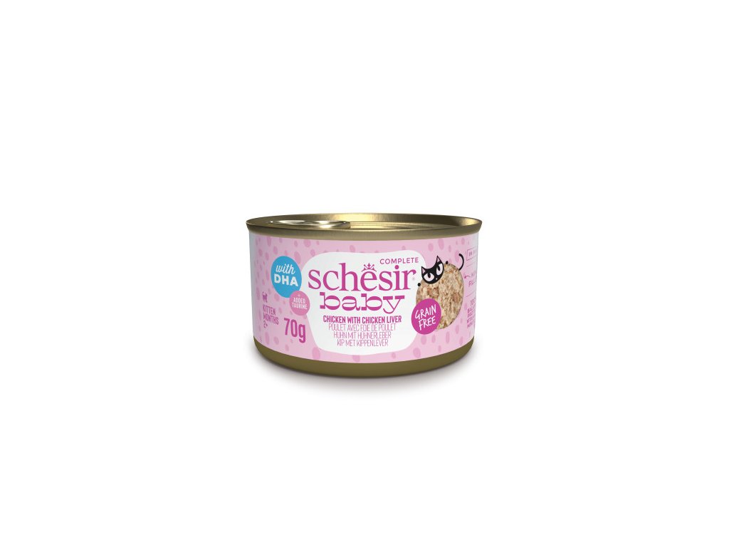 Již od prvního roku života potřebuje kotě podporu ve vývoji a doprovod při přechodu z mateřského mléka do úplného odstavení. To je důvod, proč Schesir Baby nabízí kompletní a vyvážené receptury s jemnou texturou, formulované tak, aby uspokojily specifické potřeby kotěte již od prvních týdnů života. Obsahuje taurin pro podporu růstu a DHA pro podporu správného vývoje mozku. Je založen na skutečné masové bílkovině v kombinaci s dalšími důležitými složkami a neobsahuje žádné obiloviny.
