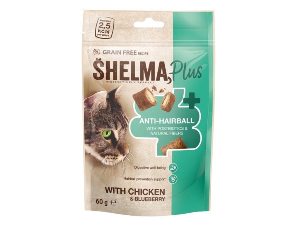 Shelma Cat Snack Anti-hairball polštářky GF 60 g