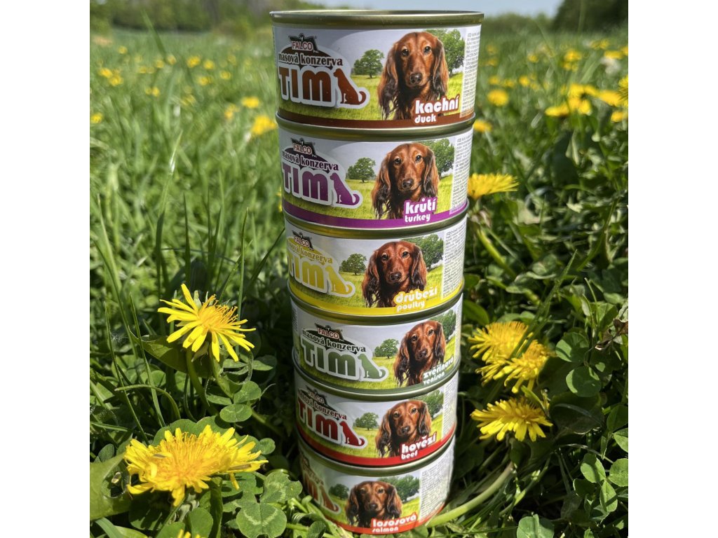 Konzerva TIM je vhodná pro všechny věkové kategorie a všechna plemena.