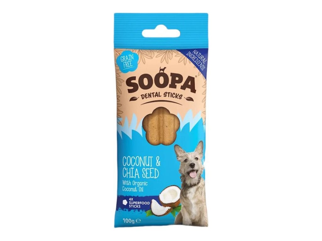 Tyčinky Soopa jsou hypoalergenní veganské pamlsky ke žvýkání.