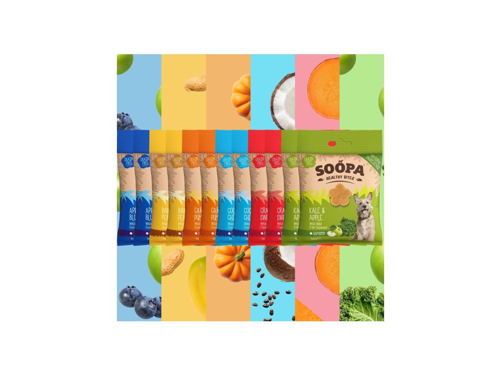 Kousky Soopa jsou veganské 100% přírodní pochoutky, vhodné například na trénink nebo jako zdravá odměna kdykoliv během dne. Díky jejich praktickému kapesnímu balení jsou ideální...