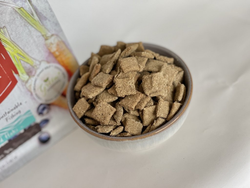 Psi milují žvýkání. Naše krmiva mají unikátní tvar Chew Well™, který přispívá k pomalejšímu tempu krmení – pejsek granule rozžvýká a zachytí jejich chuť, což zlepšuje trávení a zabraňuje mu zhltnout porci příliš rychle, jako by to mělo být jeho poslední krmení v životě. Při žvýkání dochází i k posilování čelistních kostí, které si tak zachovávají svou sílu.Složení: 64 % volně žijící treskovník novozélandský z Nového Zélandu, hovězí dršťky*, hovězí játra*, zelenina 34,9 % (celá dýně, lněné semínko, celá mrkev, bio bobulák hruškonosný), celá slávka zelenoústá 0,2 %, celé borůvky 0,2 %, manukový med 0,1 %, bio jablečný ocet 0,1 %. *Dostupné v závislosti na sezóně. Nutriční aditiva (na 1 kg): E6 zinek (zinečnatý chelát glycinu, hydrát) 90 mg, E4 měď (měďnatý chelát glycinu, hydrát) 2 mg, 3b8.10 selenové kvasnice (bio selen s. cerevisiae CNCM I-3060) 0,15 mg, E5 mangan (manganatý chelát glycinu, hydrát) 10 mg, vitamín E 60 IU, vitamín B1 3 mg, vitamín D3 600 IU, kyselina listová 0,2 mg.Garantovaná analýza / Analytické složky: Hrubý protein minimálně 37 %, obsah tuků minimálně 10 %, hrubá popelovina maximálně 10 %, hrubá vláknina maximálně 2 %, vlhkost maximálně 12 %, vápník minimálně 1,5 %, fosfor minimálně 1,1 %.Obsah kalorií (dle výpočtu) – metabolizovatelná energie: 3 460 kcal/kg.Krmivo Gentle Baked Grain Free™ Hoki značky Sunday Pets® pro dospělé psy malých a středních plemen bylo vytvořeno tak, aby splňovalo nutriční hodnoty krmiva pro dospělé psy stanovené Americkou asociací pro kontrolu krmiv (AAFCO, Association of American Feed Control Officials). Vyrobeno z čerstvých a přírodních ingrediencí – barva a tvar se proto mohou lišit.Doporučená denní krmná dávkaHmotnost psa/Aktivní životní styl/Méně aktivní životní styl2 – 5 kg/40 – 90 g/30 – 60 g5 – 10 kg/90 – 150 g/60 – 120 g10 – 20 kg/150 – 240 g/120 – 160 g20 – 30 kg/240 – 330 g/160 – 240 g