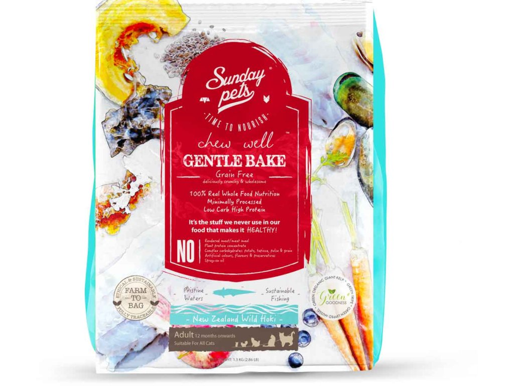 Kompletní krmivo Sunday pets Gentle Bake Hoki Cat pro dospělé kočky od 12 měsíců věku.Krmivo bez obilovin, bohaté na bílkoviny a s nízkým obsahem sacharidů. Věrně napodobuje přirozenou stravu bohatou na základní živiny nezbytné pro zdravý životní styl.