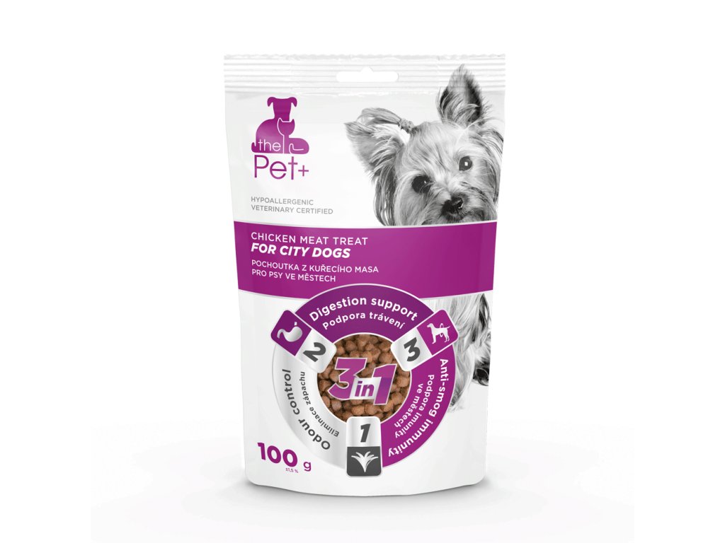Pamlsek pro malé psy, kteří žijí ve městech. Obsahuje čerstvé králičí a drůbeží maso. Juka napomáhá odbourávání škodlivin z těla a přispívá k detoxikaci organismu. Prebiotika podporují obranyschopnost organismu.