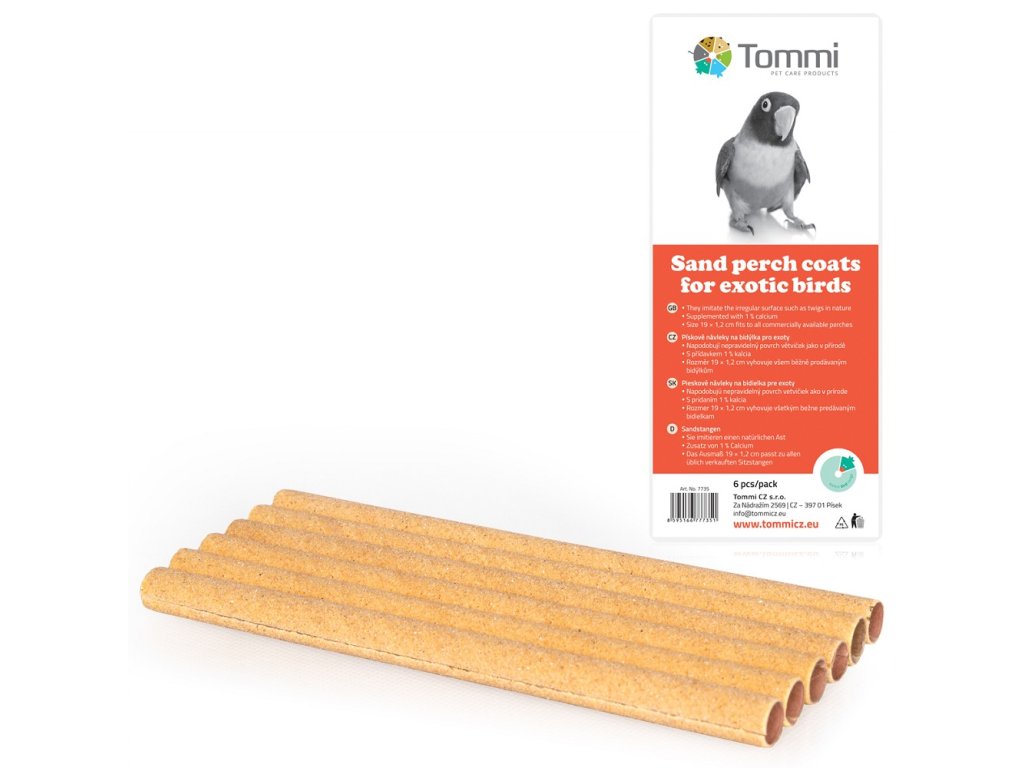 Pískové návleky na bidýlka pro exoty. Nepostradatelný doplněk do každé klece pro drobné a střední exoty. Rozměr 19 x 1,2 cm vyhovuje všem běžně prodávaným bidýlkům. Napodobují nepravidelný povrch větviček v přírodě. S přídavkem 1% kalcia. Rozměry: 19 x 1,2 cm Balení: 6 ks (5 ks + 1 ks GRÁTIS)