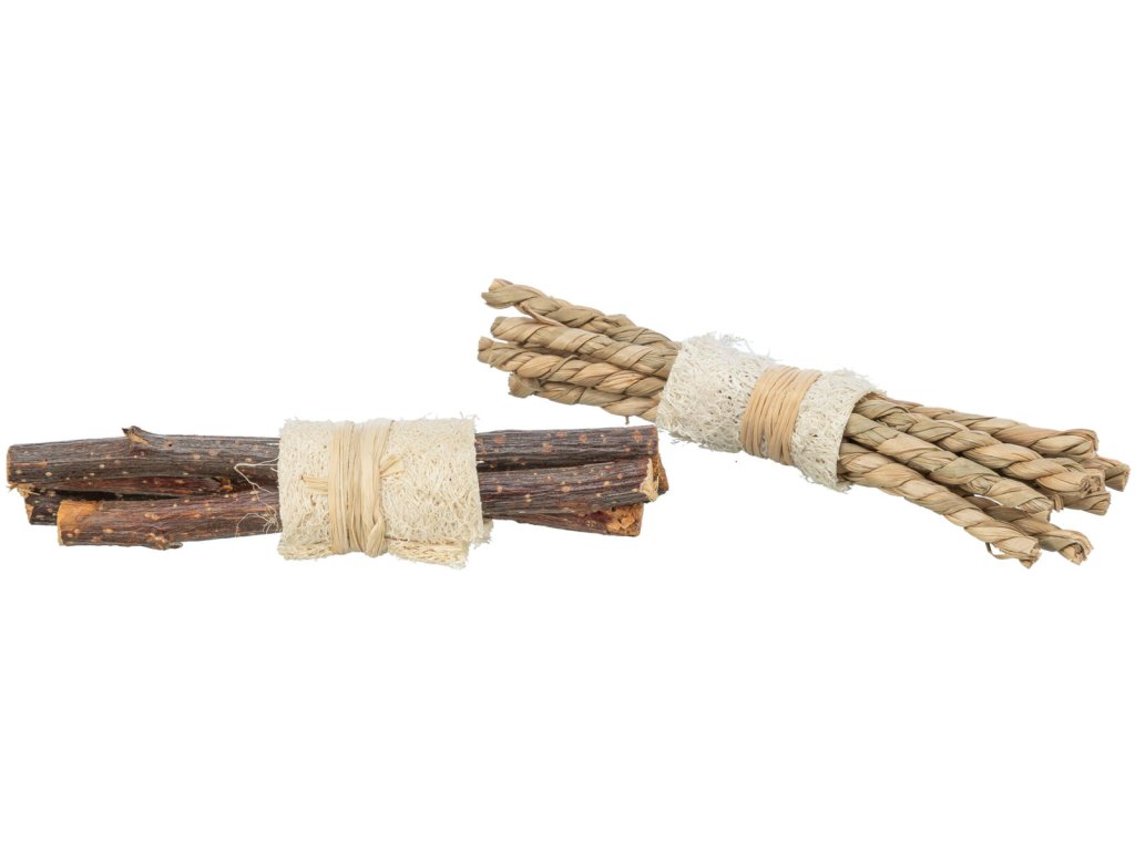 Trixie Set svazků tyček přírodní hračka pro hlodavce lufa/dřeva/mořská tráva 10 x 3 cm 2 ks