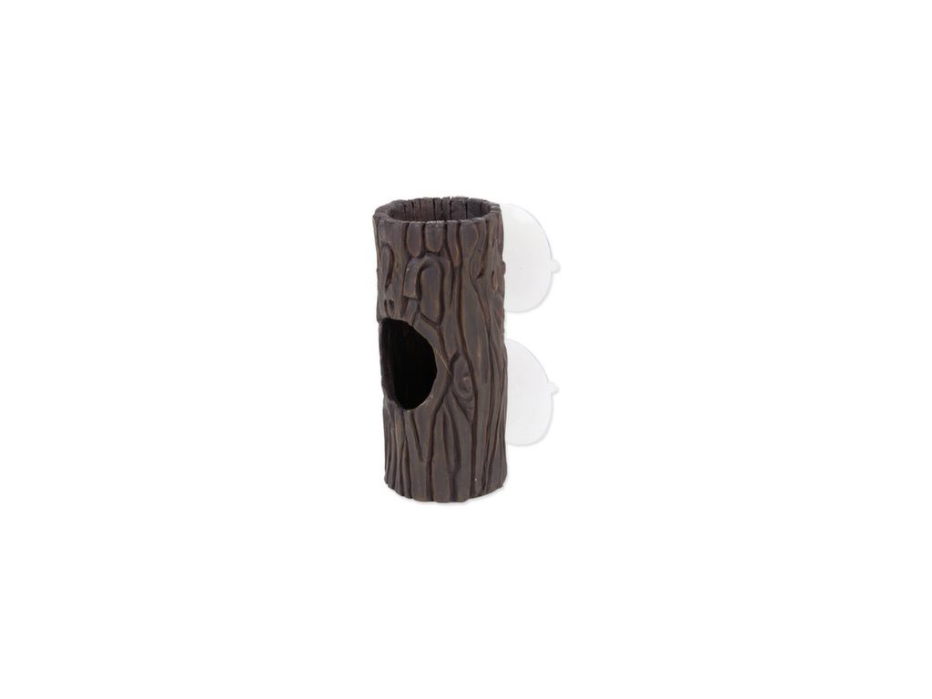 Dekorace a úkryt v designu kmene stromu má přírodní a zcela přirozený vzhled. Umožňuje efektivní využití skleněných ploch terária. Dekorace je opatřena dvěma silnými přísavkami na sklo. Před použitím doporučujeme přísavku navlhčit, bude tak lépe držet. Pro správné přichycení a výdrž přísavek je nutné, aby před aplikací byly čisté jak přísavky, tak i sklo terária tam, kde je budete chtít přichytit. Ideální pro stromové druhy plazů a obojživelníků. Nabízí kombinaci úkrytu a vyvýšeného místa pro pozorování či výhřev. Je vyrobena z pryskyřice, tudíž je lehká a přichycení přísavkami proto skvěle funguje. Rozměry: 15 x 6,5 x 9 cm