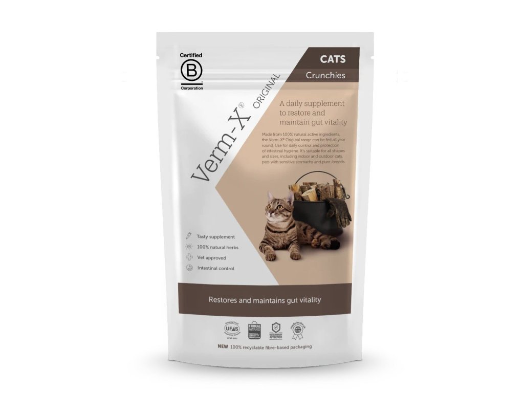 Verm - X® obsahuje 100 % přírodní bylinu šantu kočičí, která pomáhá stimulovat kočky a koťata při hraní a cvičení. Je vhodný pro dospělé kočky a koťata. Ideální pro také starší kočky, které mají sklony k přibývání na váze.