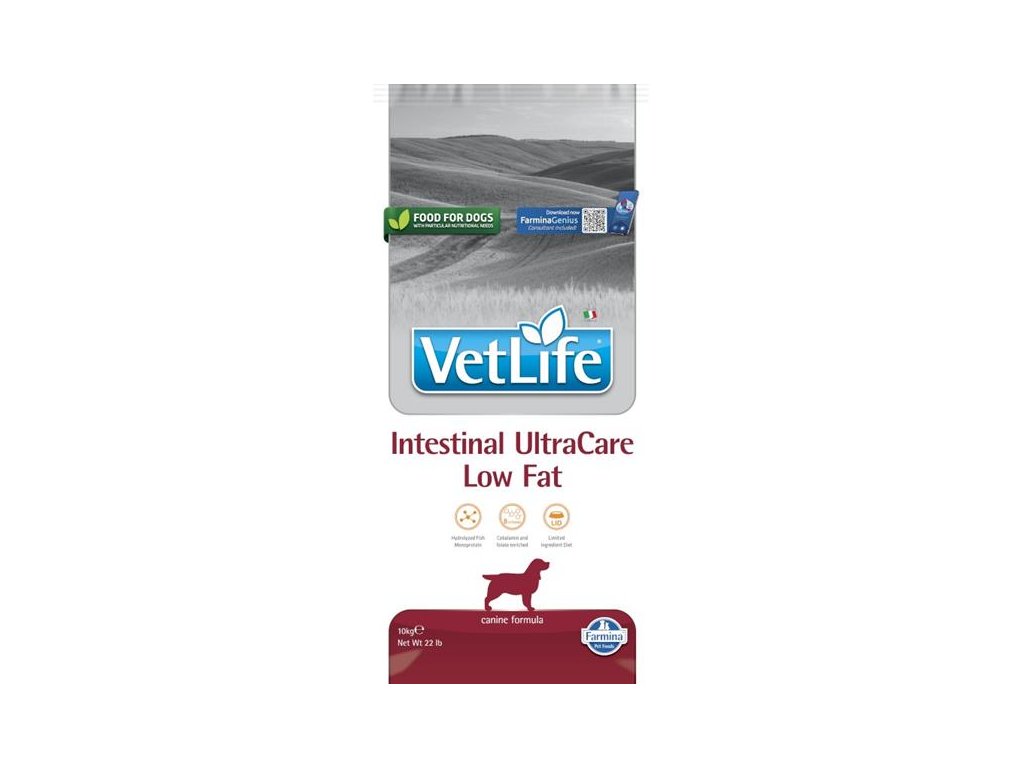 Farmina Vet Life Intestinal UltraCare Low Fat je kompletní dietetické krmivo pro dospělé psy určené pro podporu zažívání při střevních resorpčních onemocněních a pro kompenzaci maldigesce a exokrinní pankreatické nedostatečnosti.Vysoce stravitelná dieta s omezeným množstvím přísad minimalizuje riziko nežádoucích reakcí psa na krmivo. Jediným zdrojem bílkovin je hydrolyzovaný rybí protein. Rybí olej s nižším obsahem tuku snižuje zátěž sliznice a slinivky. Prebiotika MOS a FOS podporují zdraví střev. Krmivo přispívá k obnově střevní homeostázy po déletrvajícím průjmu.