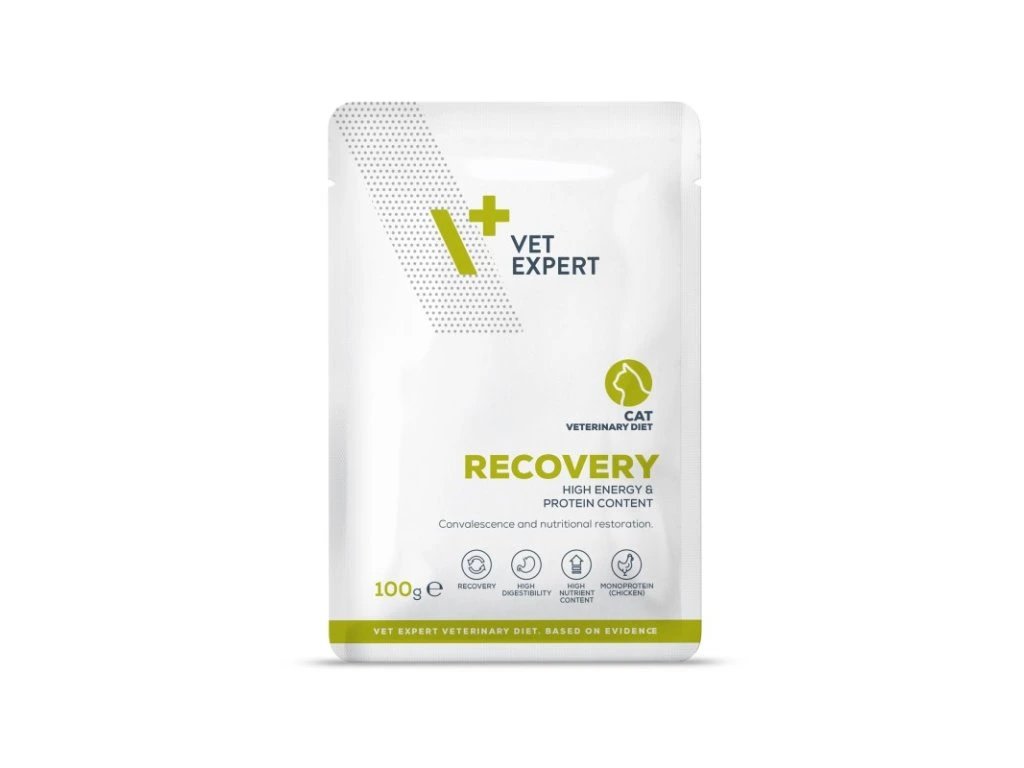 Veterinární krmivo Recovery Cat je určeno pro dospělé kočky, které vyžadují výživu během nebo po nemoci, po operaci nebo v jiných situacích vyžadujících speciální výživu během rekonvalescence.
