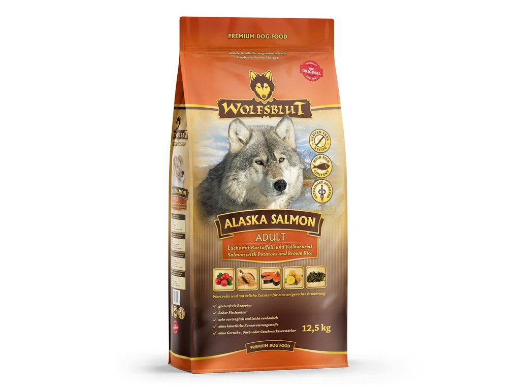 Vlci loví svou kořist od Skalistých hor Severní Ameriky, arktické tundry, hor a lesů Evropy až po pouště a stepi střední Asie. To jim dodává maso a vnitřnosti bohaté na živiny, ale také zeleninu, ovoce, bobule, kořeny a bylinky z obsahu žaludku kořisti. Obilí zde není zahrnuto. Vlk tak přijímá potřebné vitamíny, minerály, stopové prvky, enzymy a druhotné rostlinné látky. Vzhledem k tomu, že vlk je předkem všech psů, naše suché krmivo pro psy Wolfsblut je založeno na přirozených stravovacích návycích vlka. Obsahuje hodně masa nebo ryb v kombinaci se superpotravinami, které obsahují hodnotné ingredience – stejně jako v přírodě, bez obilovin. Náš výběr výjimečných druhů masa a superpotravin bohatých na živiny vychází z vlčích biotopů a jejich pestré stravy. Wolfsblut nabízí každému psovi druhově vhodnou a originální stravu a díky rozmanitosti odrůd si každý najde něco, co snese. Receptura suchého krmiva ALASKA SALMON kombinuje výživu vlků s nejnovějšími vědeckými poznatky o správné výživě psů.