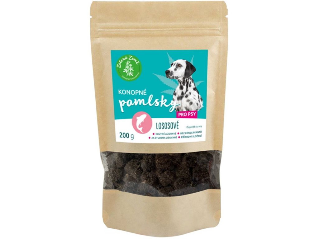 Zelená Země Konopný pamlsek pro psy lososový 200g